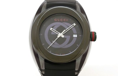 Details about Gucci 1371 MenS WatchSink. Gucci Sync 1371 Quartz SS Rubber Mens Watch. 10inch 25cmCase profound. GUCCI 1371 Sync Stainless Steel Plastic Rubber Quartz Mens Watch Used. 65inch 165-21cmBand Width. 04inch 10mm Spec Dial Color. Stainless steel and nylon case 46 mm. Description Store Item No. Measures Case without crown 457mm 486 with crown Lug to lug is 54mm Lugs are 21mm apart Case is 13mm thick Watch shows signs of wear please review all pictures carefully for detail and condition Watch is running and keeping good time There is no band lugs are 21mm Note water resistance is not.