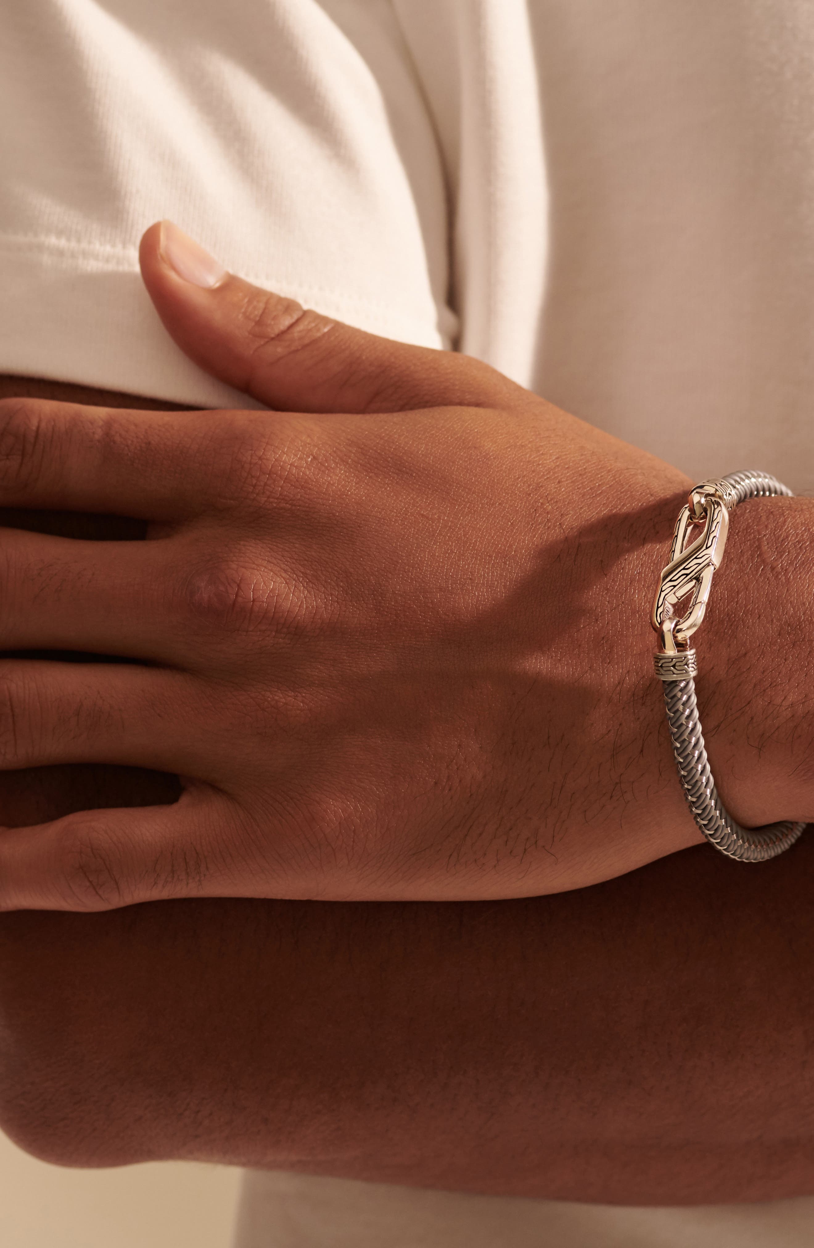 Silver and 18k gold accent beads are patterned with John Hardys Classic Chain design. Mens Classic Chain Silver Double Wrap Bracelet with Hook Clasp with 8mm. Legends Naga Diamond Pavé Bracelet.